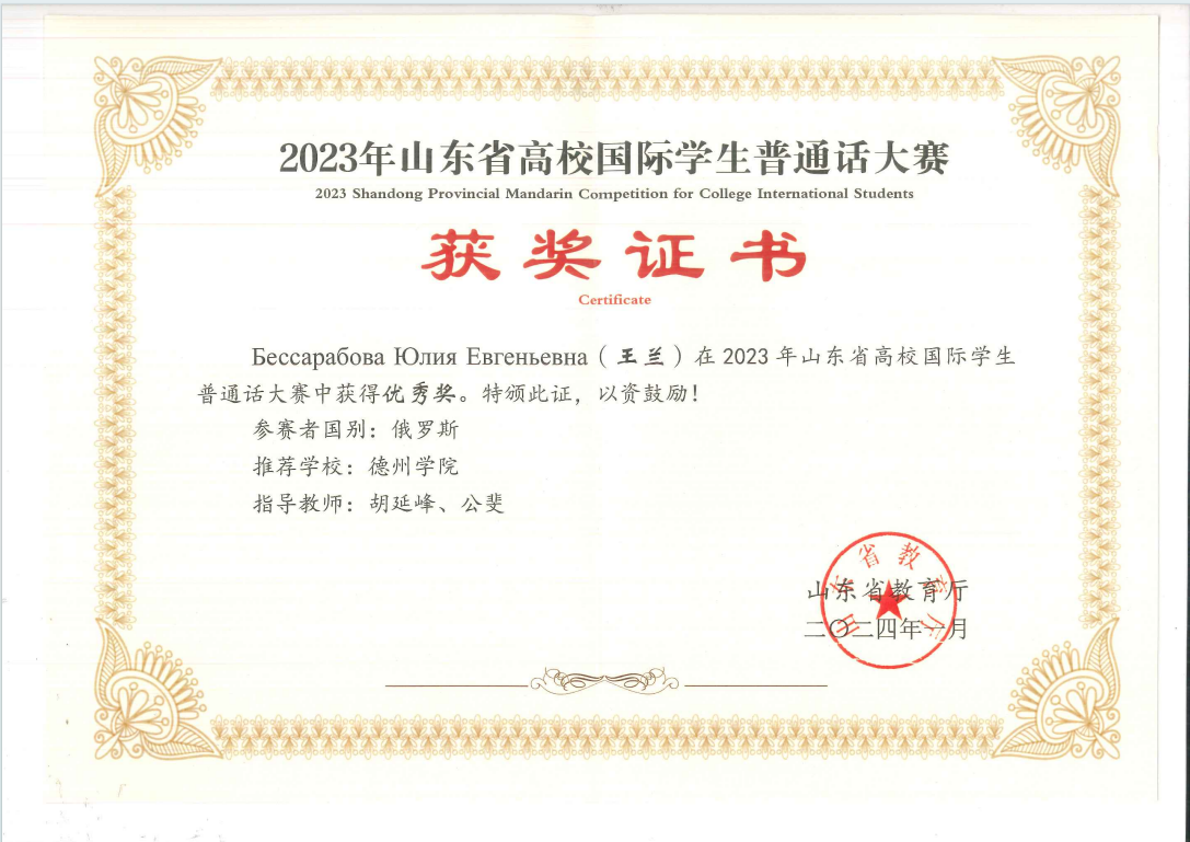 我院留学生在“用英语讲中国故事”比赛、中华经典诵读大赛山东省赛、山东省高校国际学生普通话大赛、bbin电竞游戏的官方网址汉字书写比赛等赛事中,脱颖而出,荣获多个奖项,为中国文化传播贡献了自己的力量。