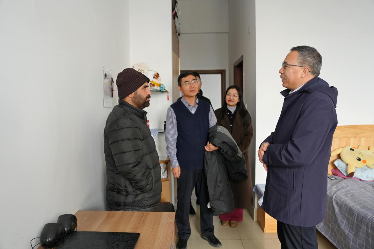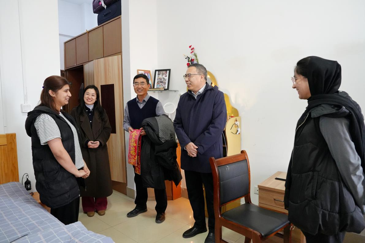 在农历新年即将到来之际,学校党委委员、副校长刘印房在国际教育学院负责人的陪同下,于1月23日对在校留学生进行了走访,并送上新春祝福。