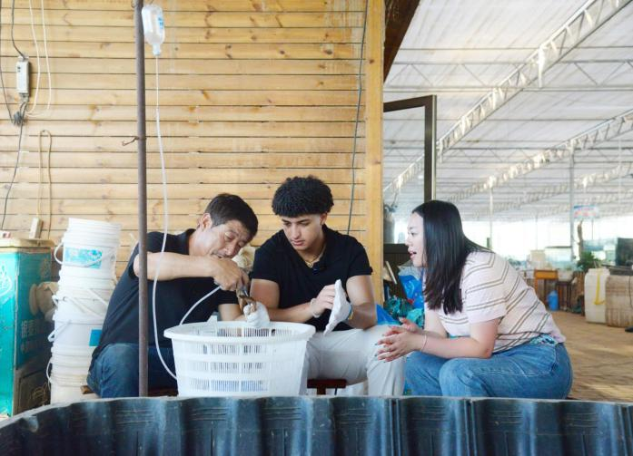 在拍摄过程中,QACHACH ILIASS 全程积极参与,与当地村民和工作人员默契配合、互动融洽。在泥鳅养殖基地,他俯身尝试捕捉泥鳅,指尖触碰到泥鳅滑溜身体的一刹那,成为这次乡村行程中一个意外而有趣的插曲。面对充满新奇的乡村体验,QACHACH ILIASS 兴奋地说道:“这是一种前所未有的体验——泥土的触感、大家的欢声笑语,都让我真切感受到中国乡村的热情与活力,比在课堂上学到的更加生动和深刻。”